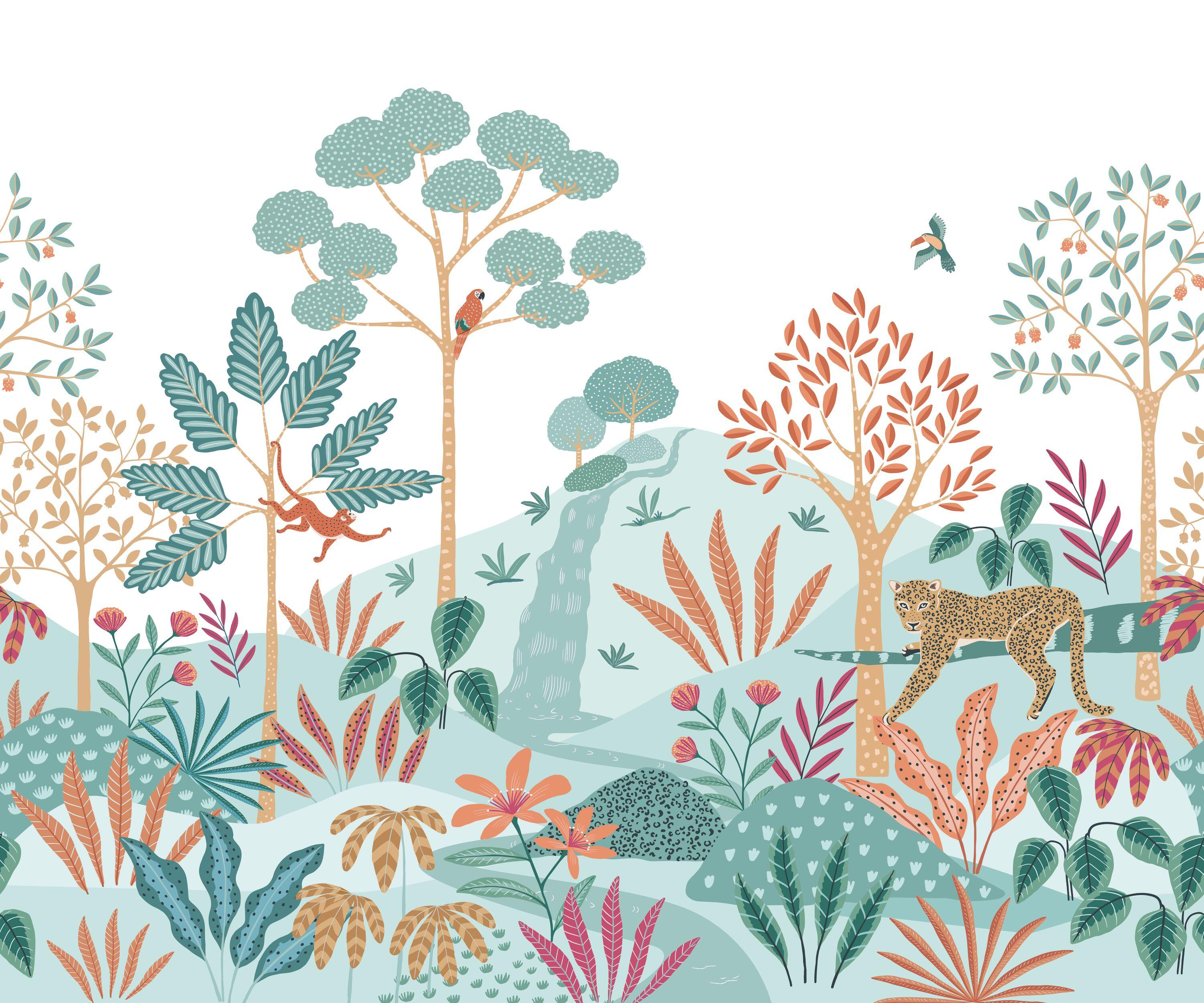 Papier peint panoramique PIMP MY WALL jungle vert l 300 x H 310 cm