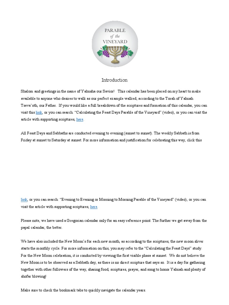 2025 Parable of the Vineyard Calendar PDF Rosh Hashanah Calendar