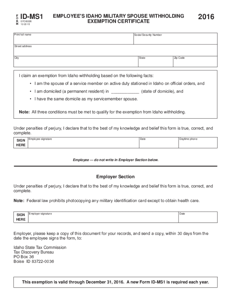 Fillable Online FORM ID MS1 2016 Employee #39 s Idaho Military Spouse