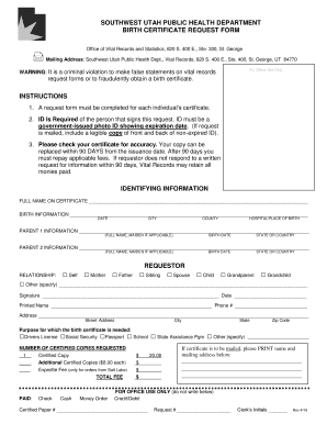 Fillable Online swuhealth Birth certificate request Southwest Utah