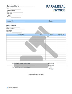 Fillable Online Paralegal Invoice Template Fax Email Print pdfFiller