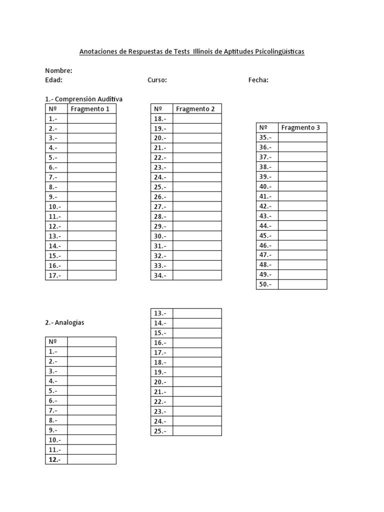Anotaciones de Respuestas de Tests Illinois de Aptitudes