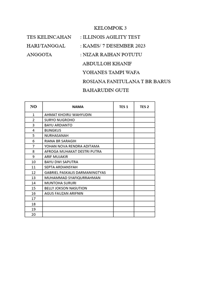 Form Test Illinois Agility Test PDF