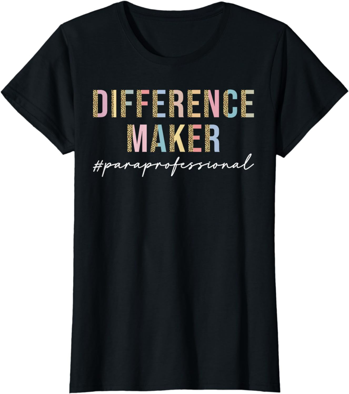 Difference Maker Paraprofessional Leopard Teacher Aide T Shirt