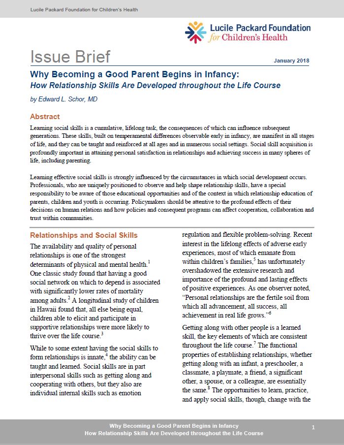 Why Becoming a Good Parent Begins in Infancy: How Relationship Skills