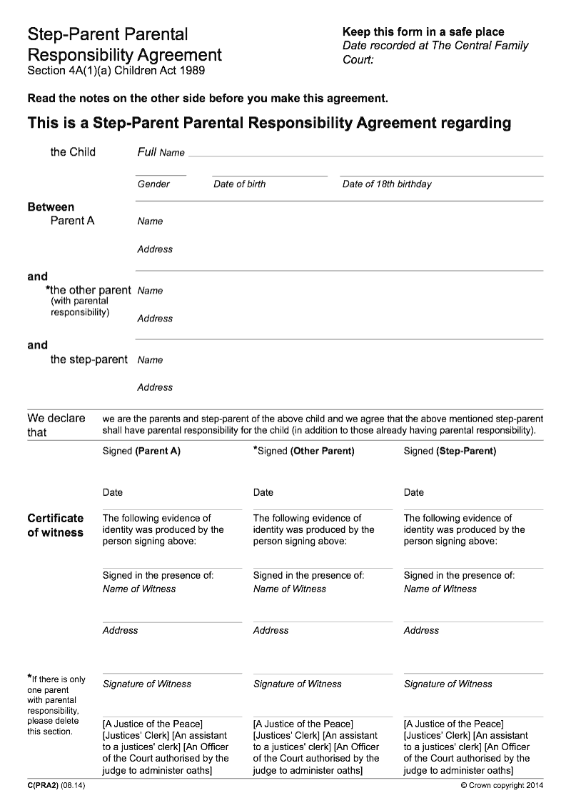 Parental Responsibility Agreement Template UK