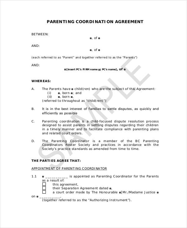 Parenting Agreement Templates 9 Free PDF Documents Download