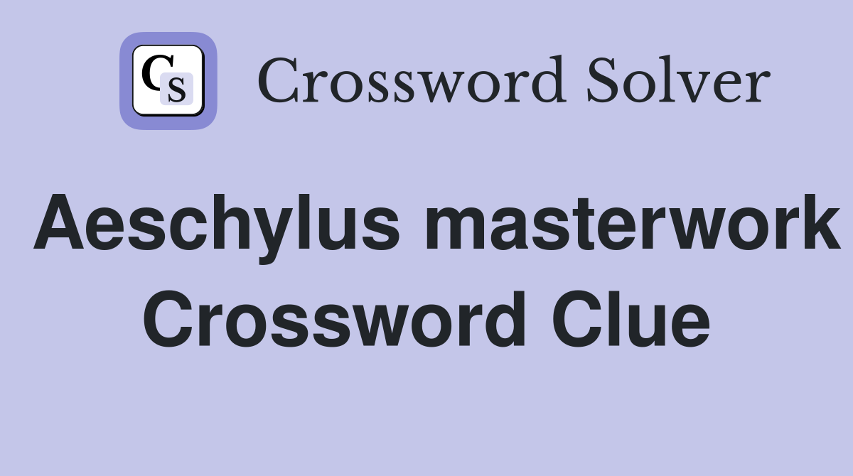 Aeschylus masterwork Crossword Clue Answers Crossword Solver