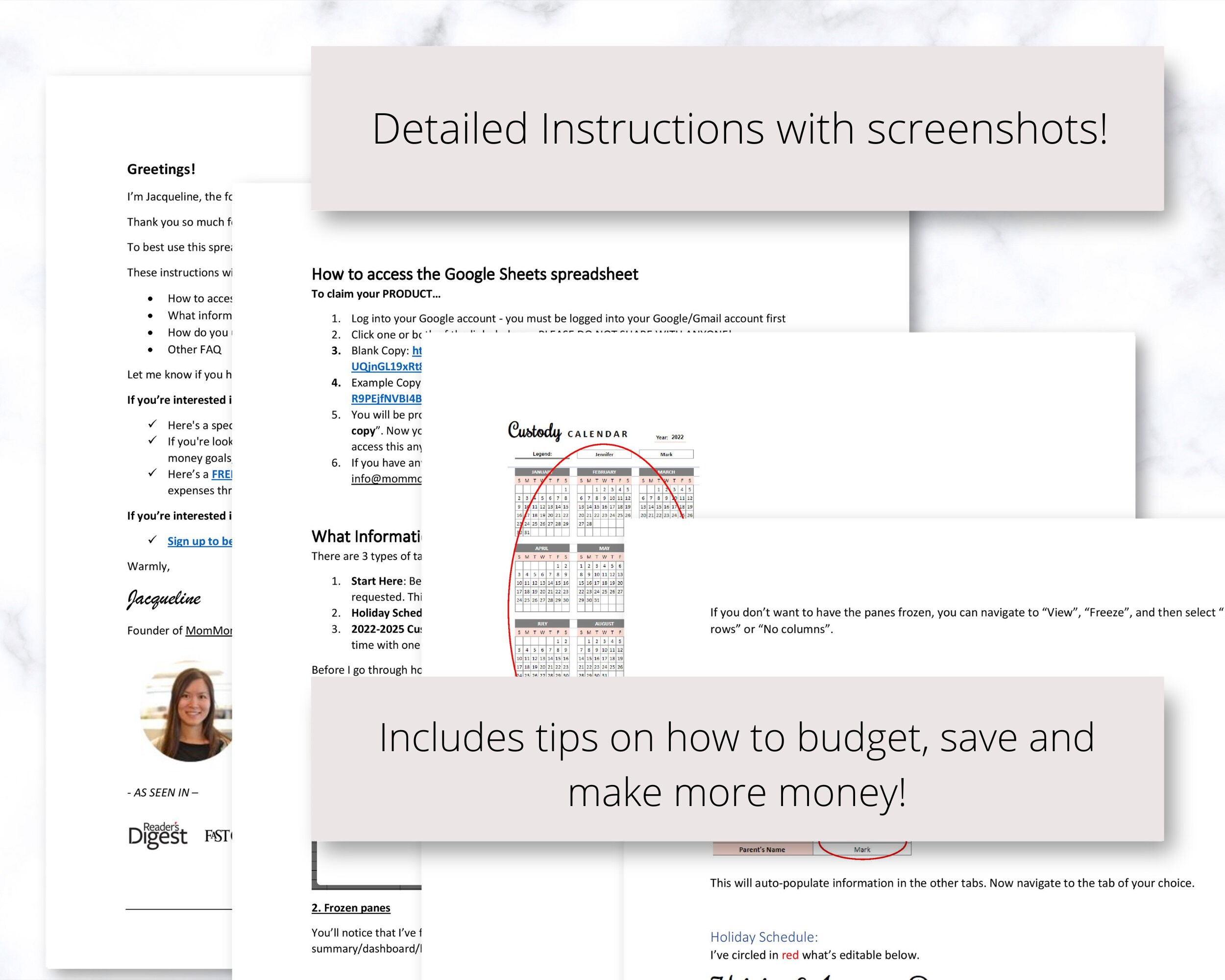 Co Parenting Calendar Excel Spreadsheet for Shared Parenting Mom
