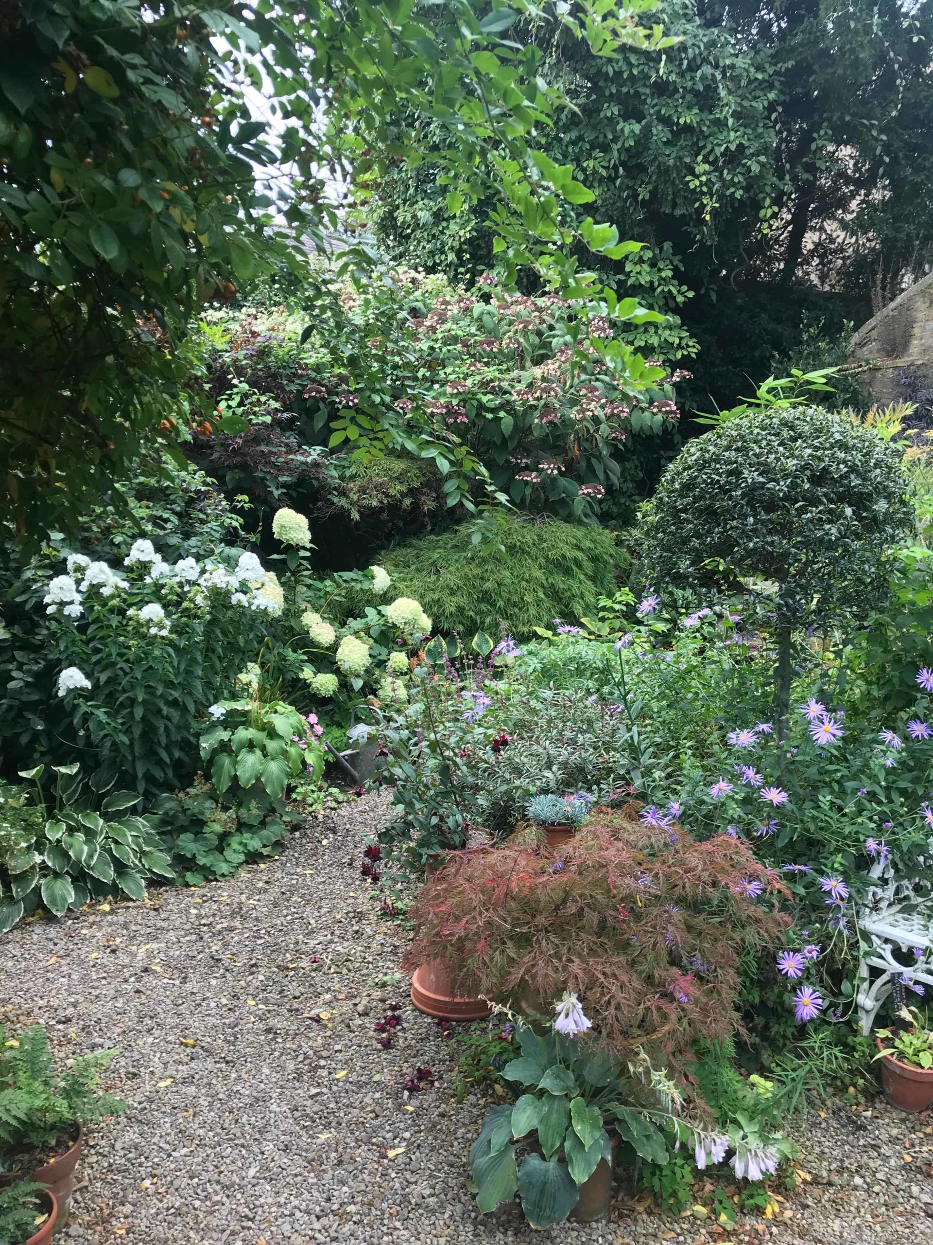 Charles Butler Gardens: Osmanthus Burkwoodii and Hydrangea Annabelle