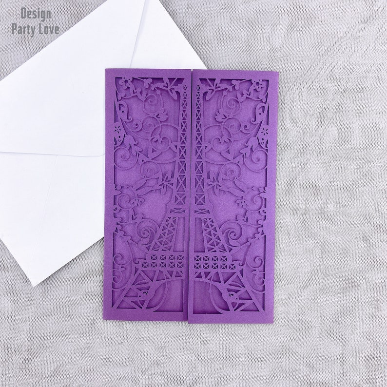 Purple Paris Laser Cut Invitations Shimmery Paris Quinceañera Etsy