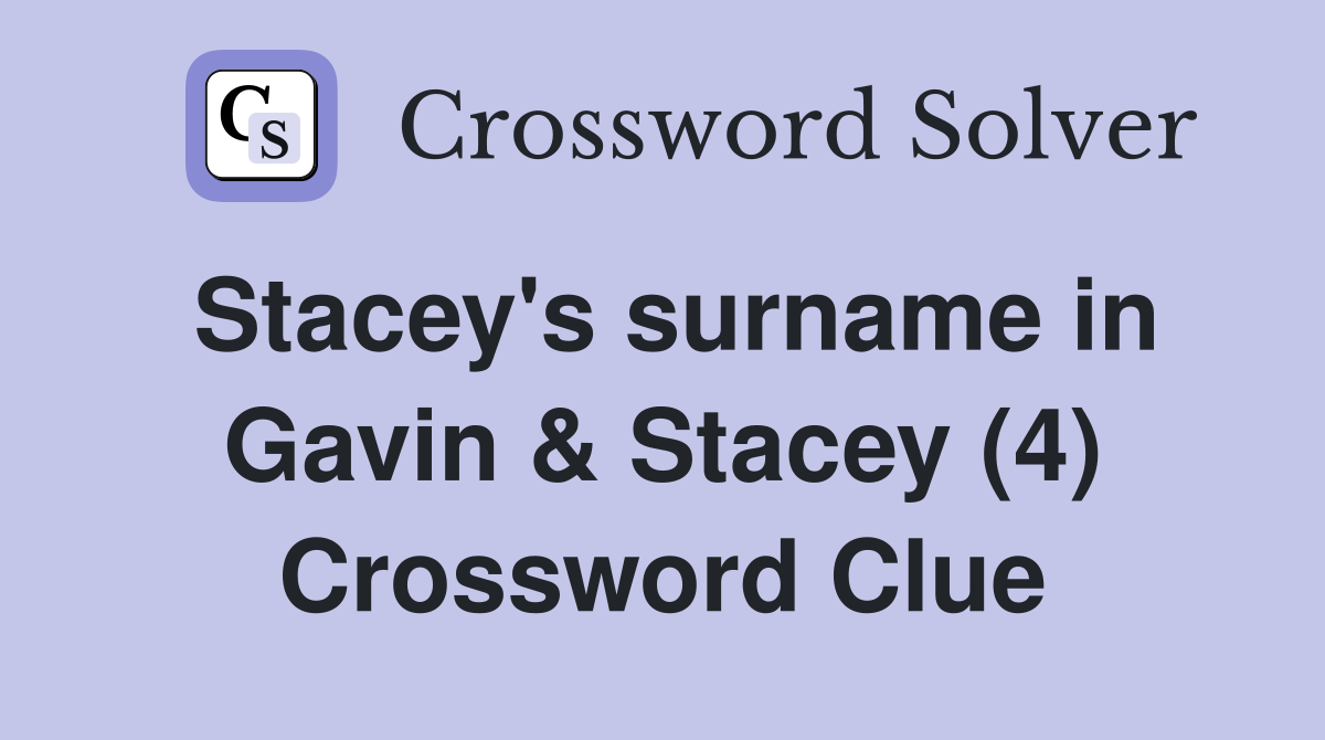 Stacey #39 s surname in Gavin Stacey (4) Crossword Clue Answers