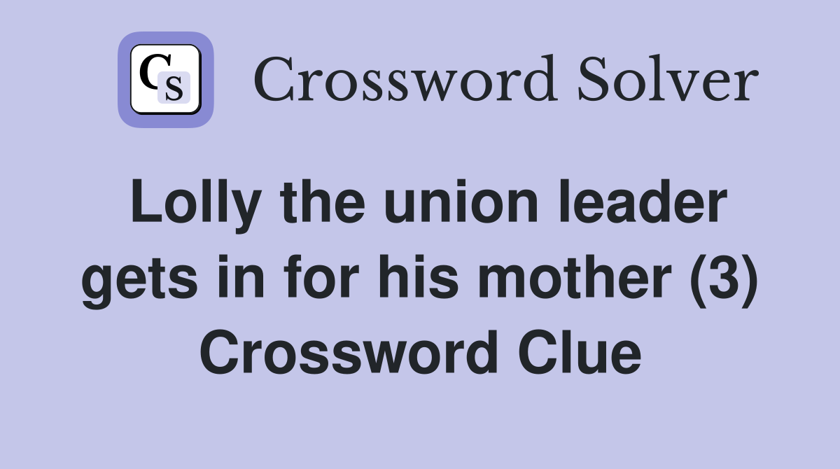 Lolly the union leader gets in for his mother (3) Crossword Clue