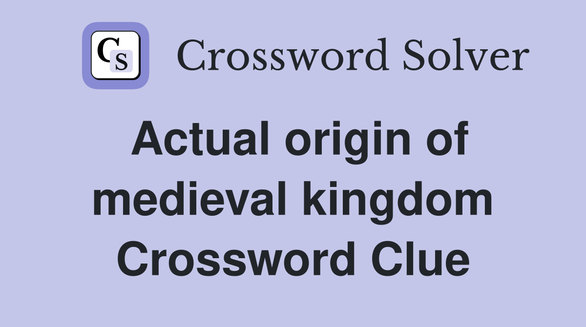 Actual origin of medieval kingdom Crossword Clue Answers Crossword
