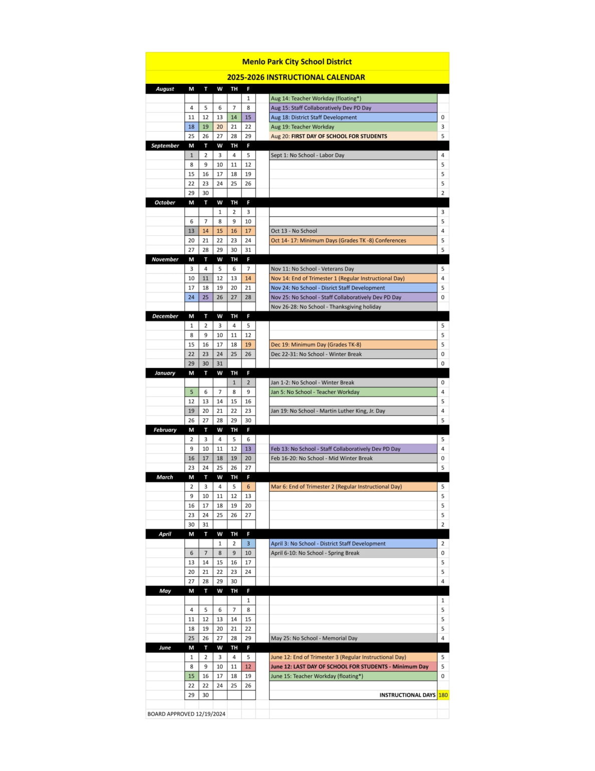 Menlo Park City School District Calendar 25 26 PDF revised EduCounty