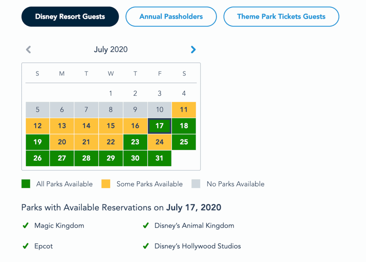 UPDATE: Park Pass Availability for Walt Disney World Annual Passholders