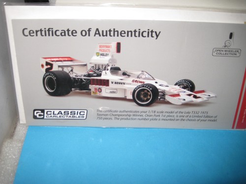 CLASSIC 1/18 COA ONLY CERTIFICATE AUTHENTICITY LOLA T332 1995 1 ORAN