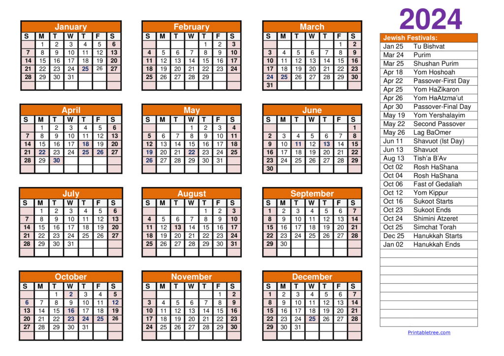 2024 Calendar with Jewish Holidays Printable Calendar 2024