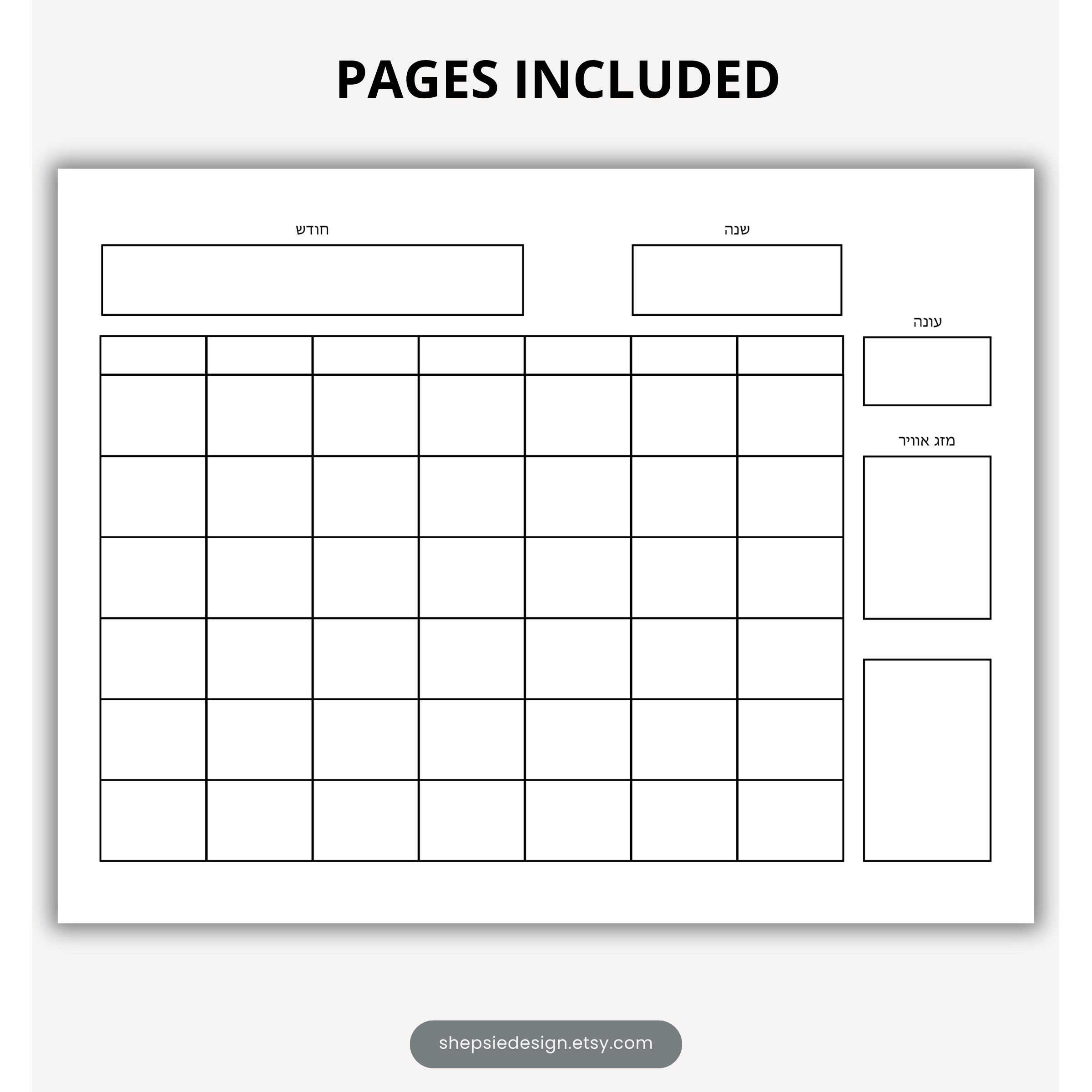 2024 Hebrew Calendar Etsy
