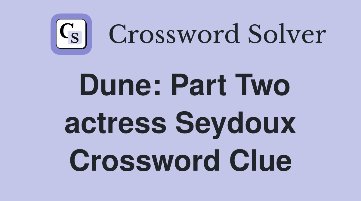 Dune: Part Two actress Seydoux Crossword Clue Answers Crossword Solver