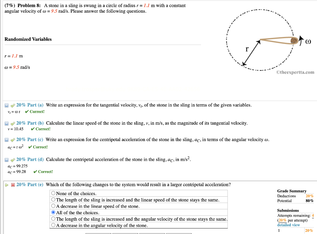 Solved (7 #92 %) Problem 8: A stone in a sling is swung in a Chegg com