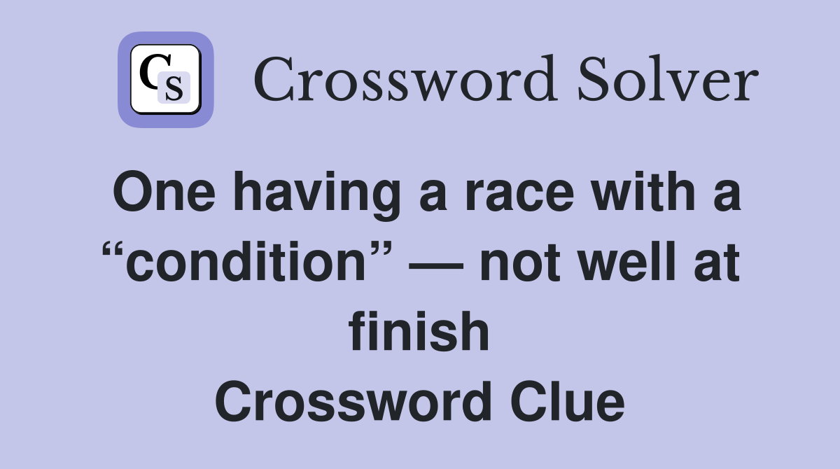 One having a race with a condition not well at finish Crossword