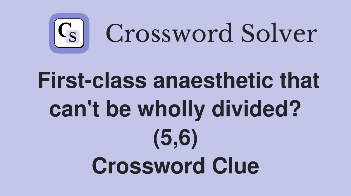 First class anaesthetic that can #39 t be wholly divided? (5 6) Crossword