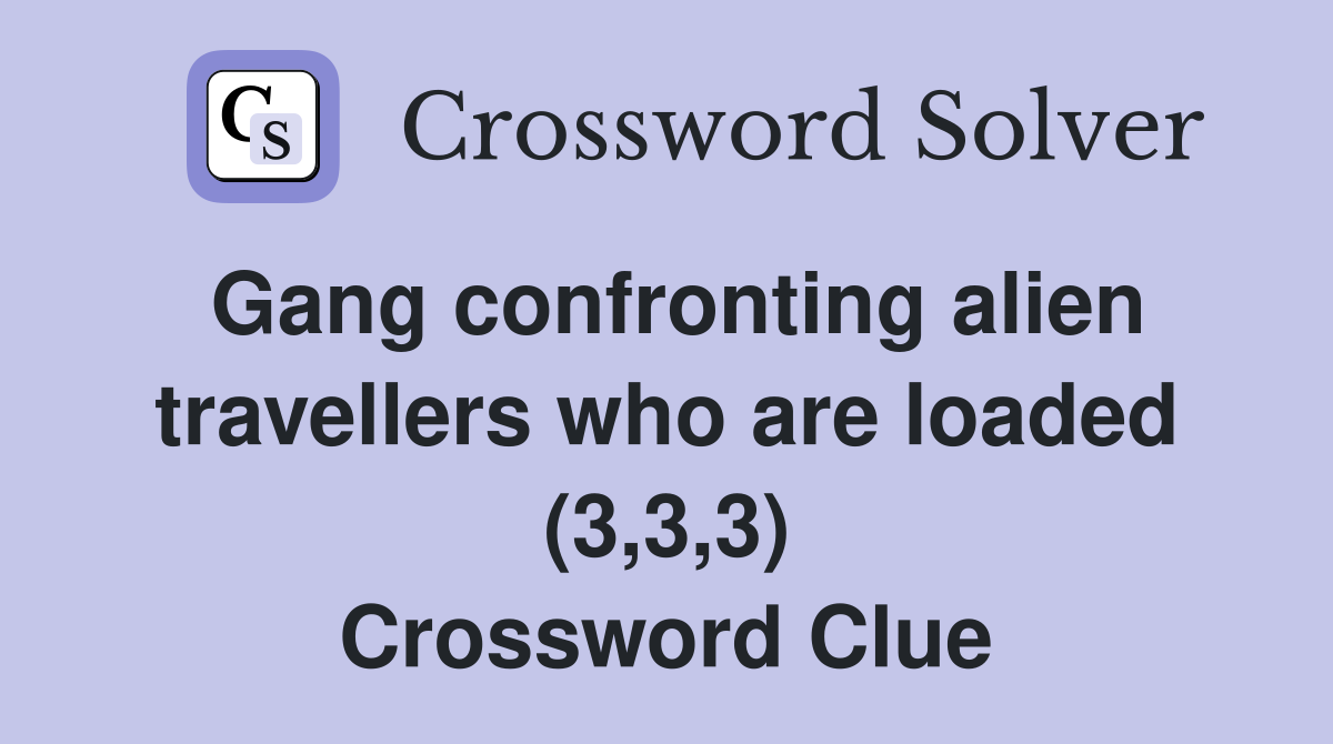 Gang confronting alien travellers who are loaded (3 3 3) Crossword