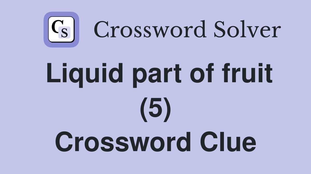 Liquid part of fruit (5) Crossword Clue Answers Crossword Solver