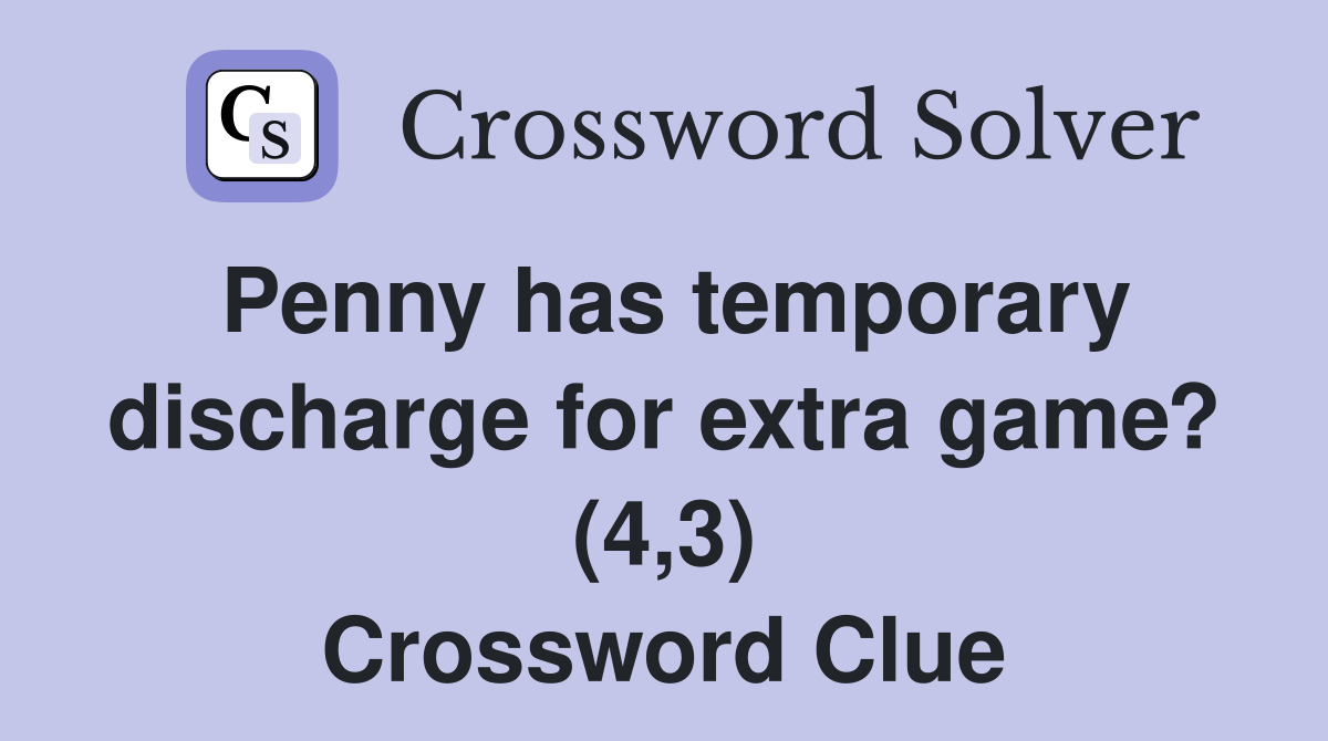 Penny has temporary discharge for extra game? (4 3) Crossword Clue