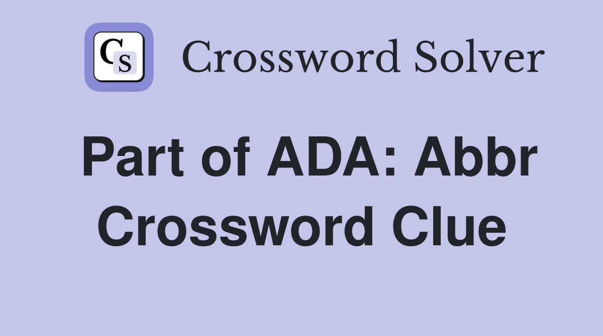 Part of ADA: Abbr Crossword Clue Answers Crossword Solver