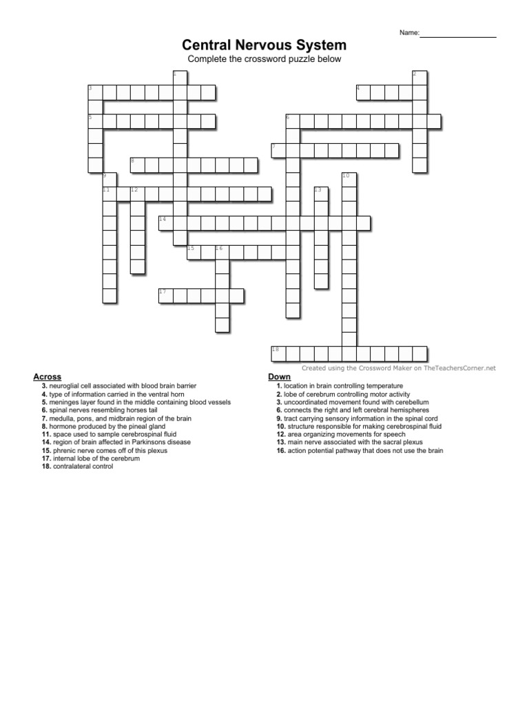 CNS Composed of the brain and Spinal Cord Crossword Labs