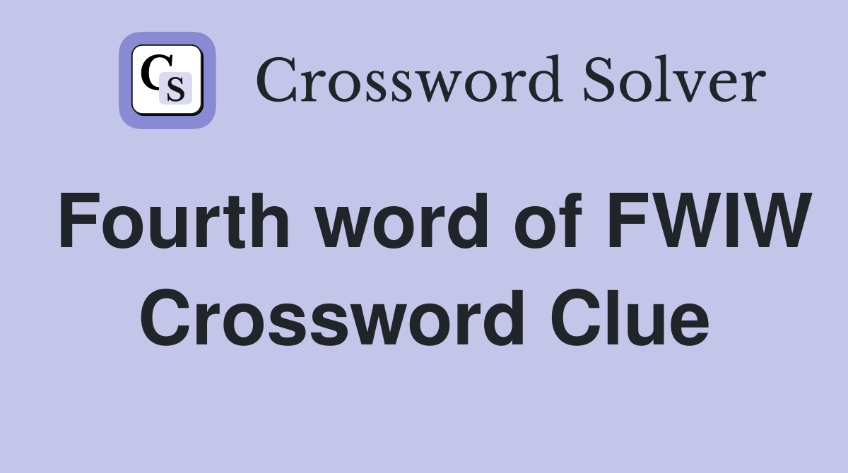Fourth word of FWIW Crossword Clue Answers Crossword Solver