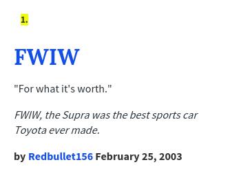 What Does FWIW Mean? Definition Usage Examples