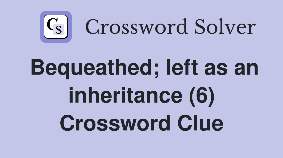 Bequeathed left as an inheritance (6) Crossword Clue Answers