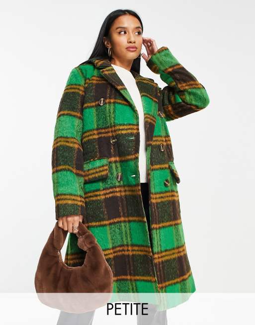 QED London Petite Zweireihiger Longline Mantel in kariertem Grün ASOS