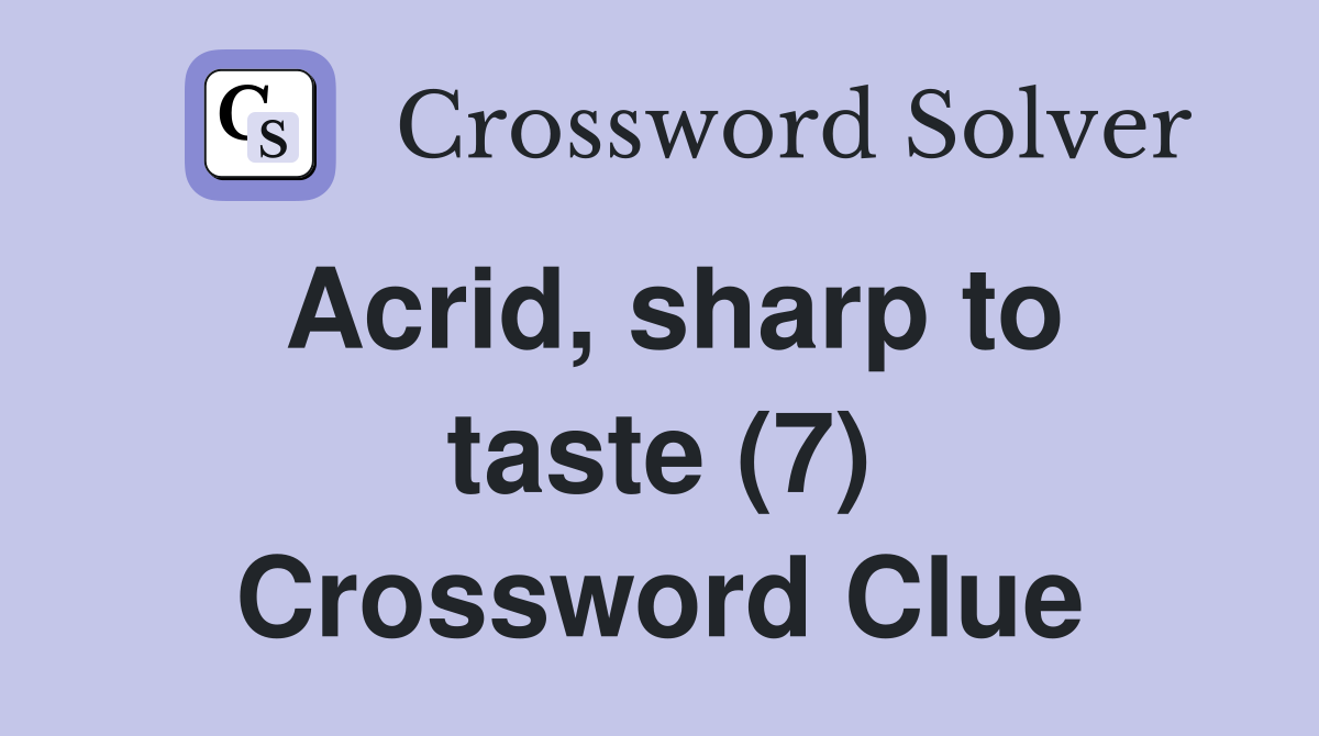 Acrid sharp to taste (7) Crossword Clue Answers Crossword Solver