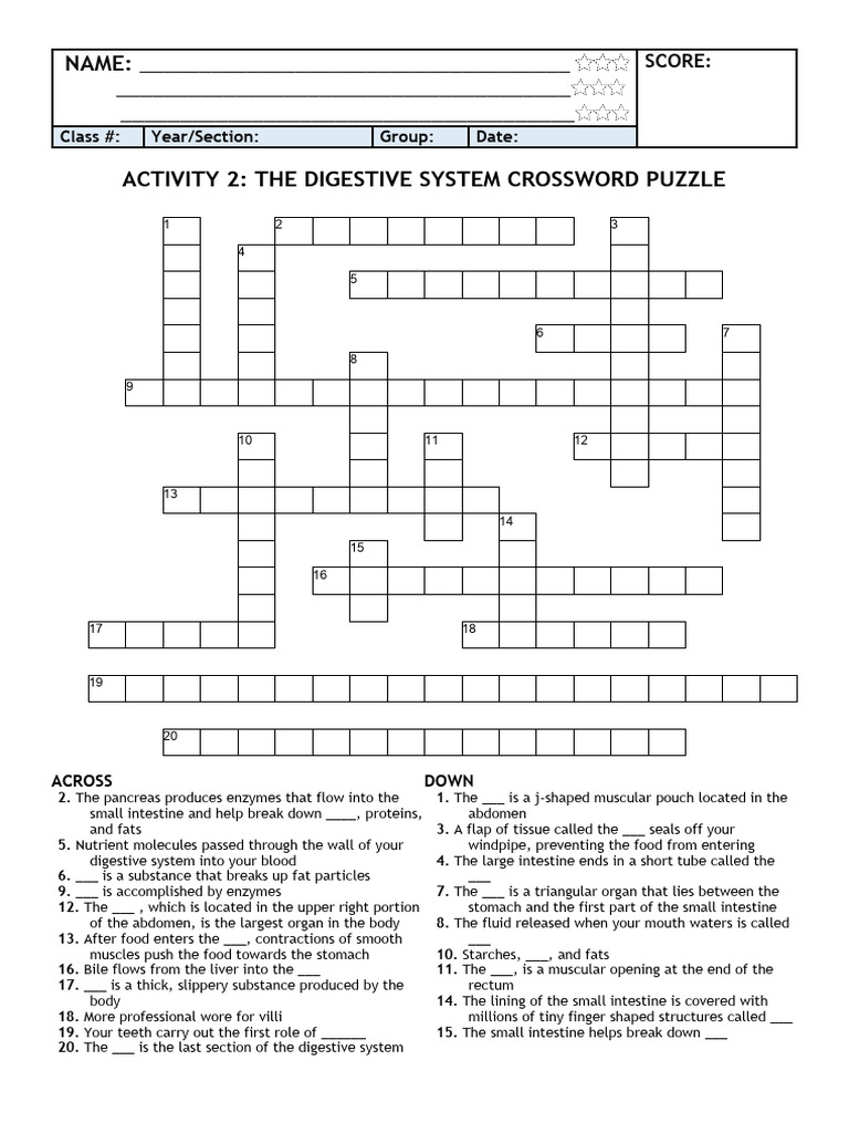 Rinhs Science 8 4th Activity 2 Digestive System Crossword Puzzle For