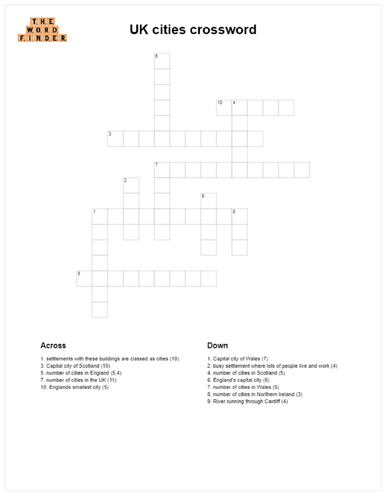 UK cities crossword Teaching Resources