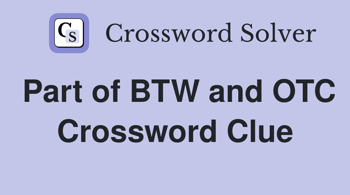 Part of BTW and OTC Crossword Clue Answers Crossword Solver