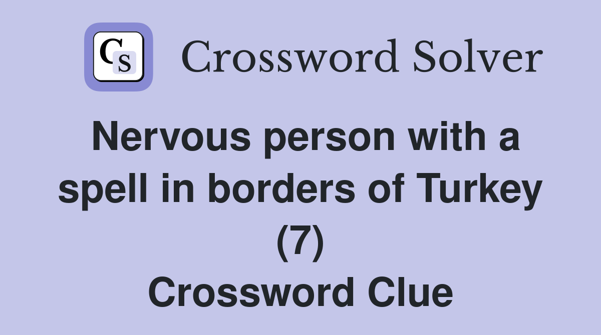Nervous person with a spell in borders of Turkey (7) Crossword Clue