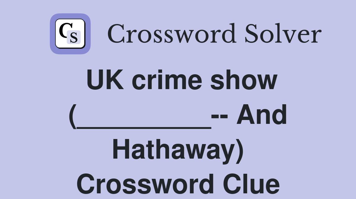 UK crime show ( And Hathaway) Crossword Clue Answers