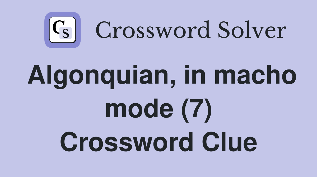 Algonquian in macho mode (7) Crossword Clue Answers Crossword Solver