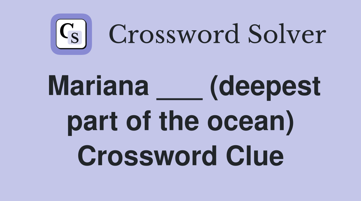 Mariana (deepest part of the ocean) Crossword Clue Answers
