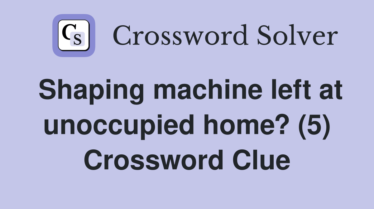Shaping machine left at unoccupied home? (5) Crossword Clue Answers