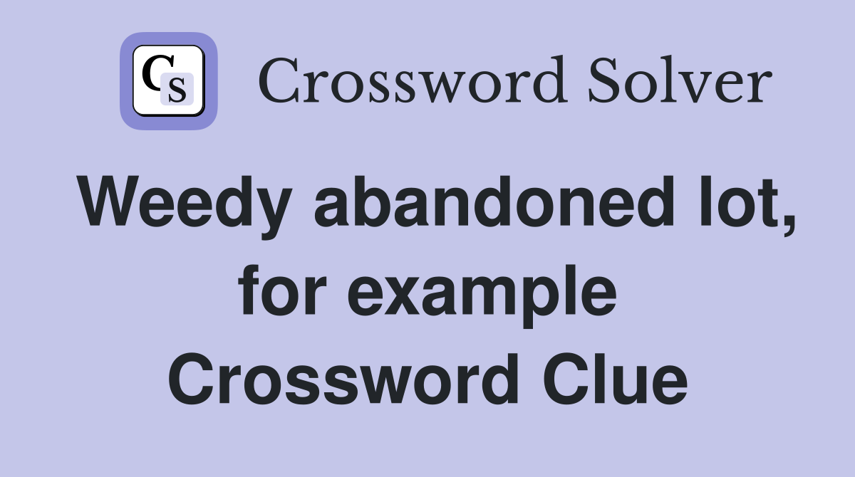 Weedy abandoned lot for example Crossword Clue Answers Crossword
