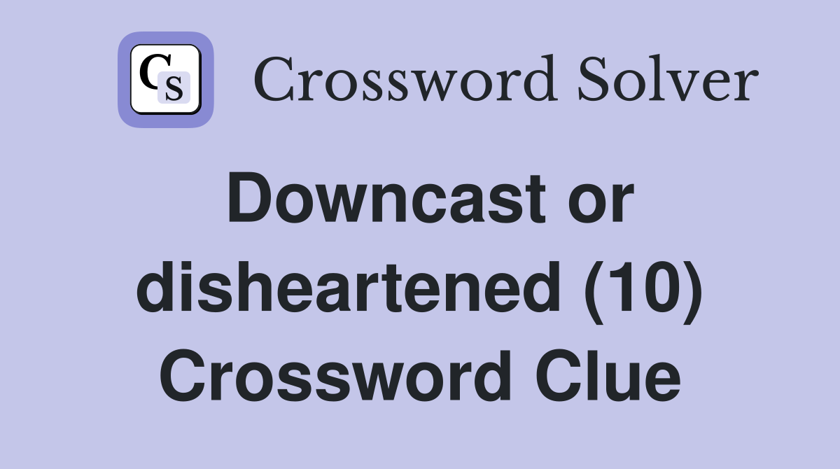 Downcast or disheartened (10) Crossword Clue Answers Crossword Solver