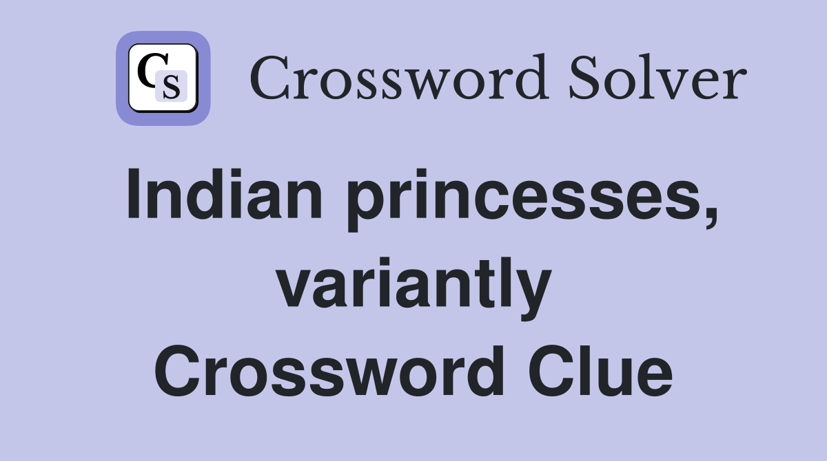Indian princesses variantly Crossword Clue Answers Crossword Solver