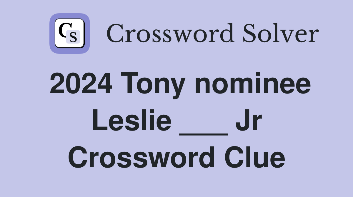2024 Tony nominee Leslie Jr Crossword Clue Answers Crossword