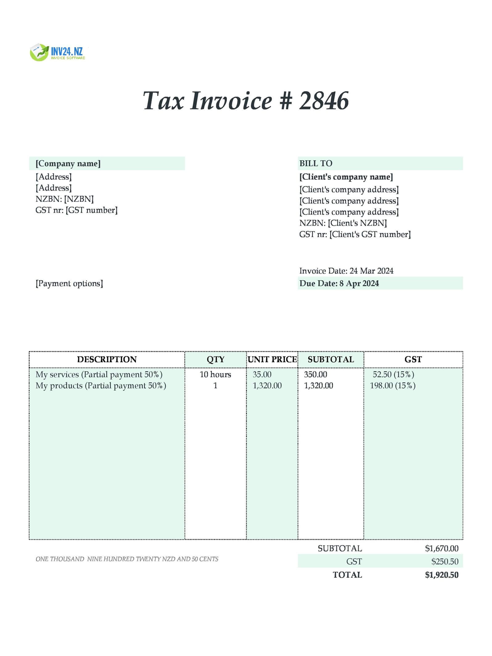 Partial Payment Invoice in New Zealand: Meaning Sample